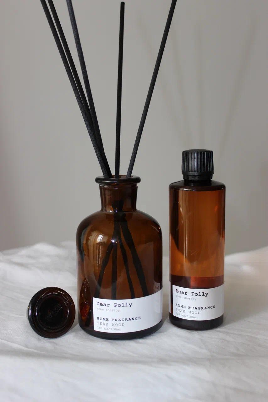 TEAK WOOD - томный, теплый, шлейфовый аромат. Он начинается с пряных верхних нот душистого перца, смешанного с кожей. Средние ноты табачного листа и гвоздики сливаются с древесной, глубокой базой из сандала, амбры и перца. Этот аромат наполнен натуральными эфирными маслами, включая кедровое дерево, пачули, черный перец и ягоды душистого перца.